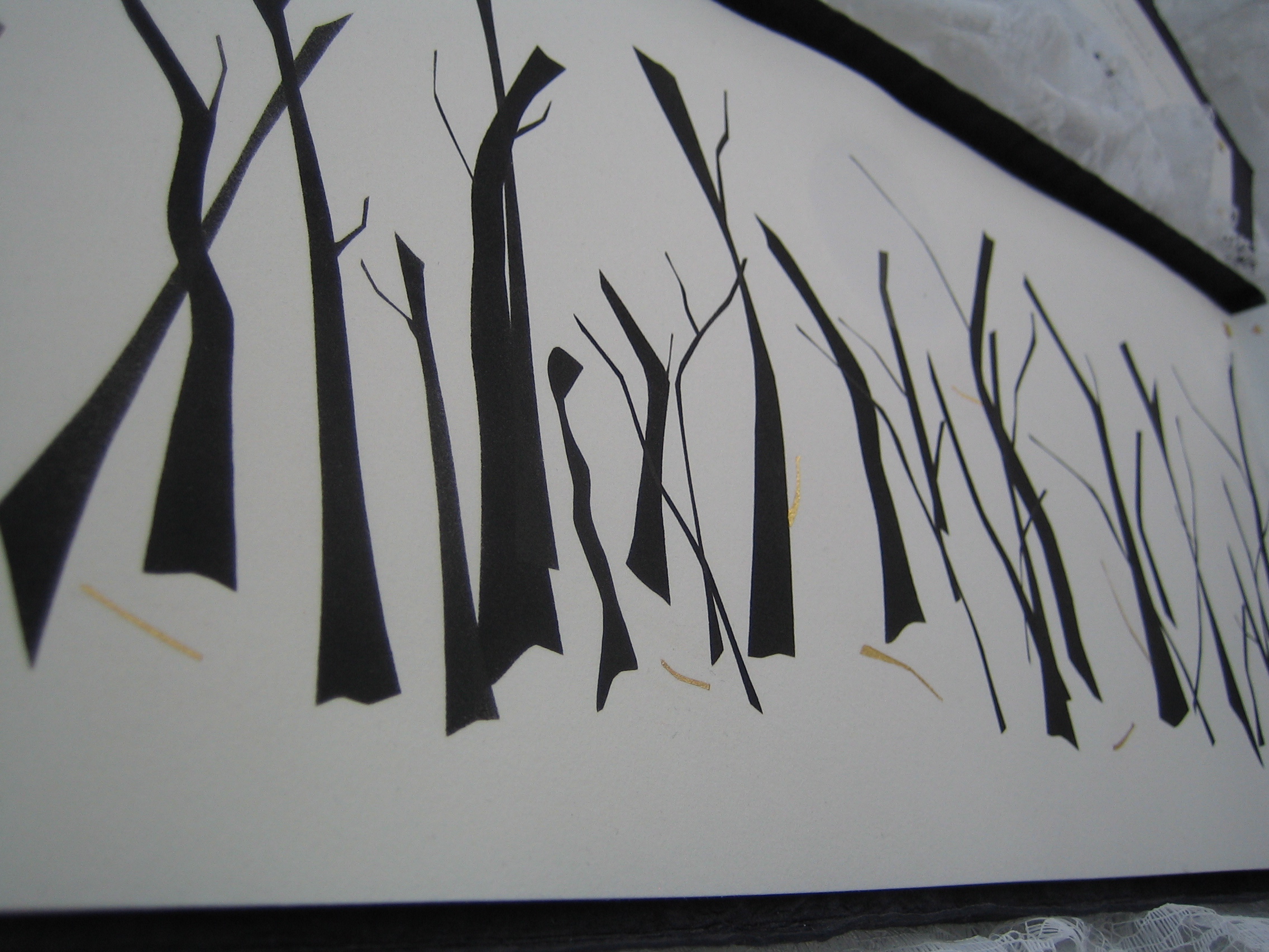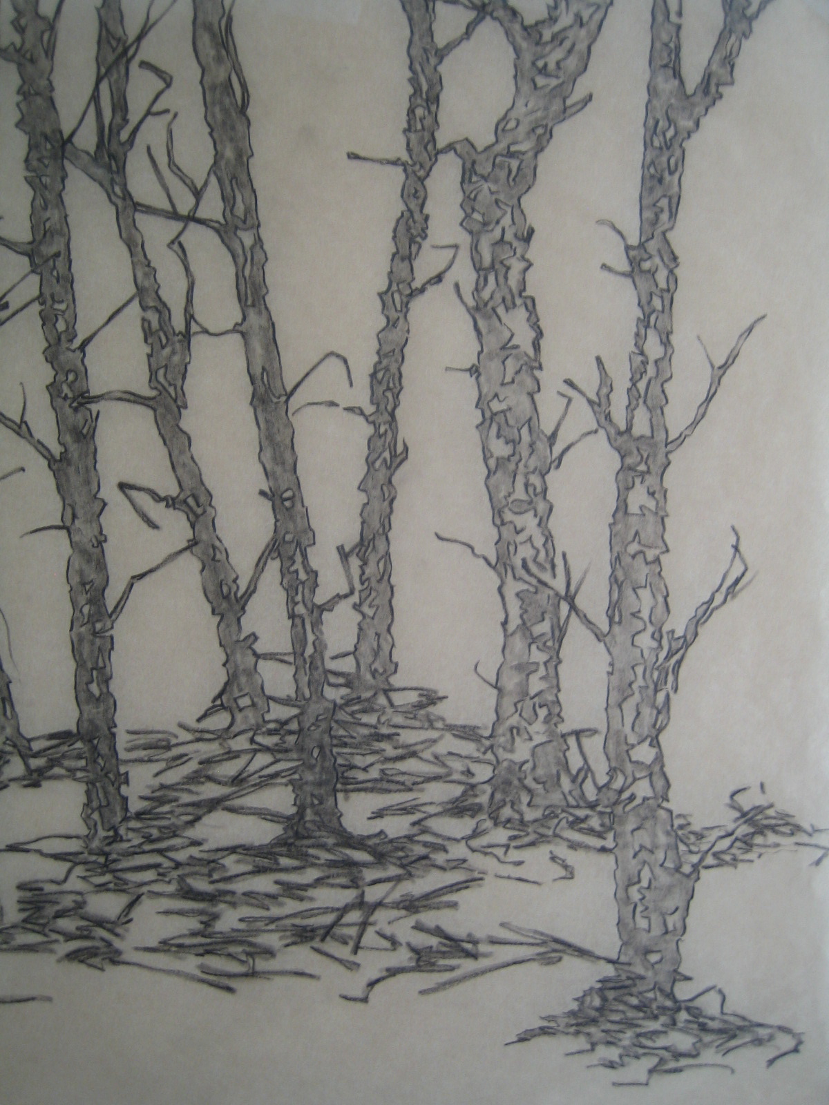 An early summer gale-force storm felled some trees on my property. There was some discussion of cleaning these up, but I saw these trees as something sculptural, and decided to leave the felled trees there. In time they will dry up and blacken, and add calligraphic line to that section of the yard. It is an experiment… These trees are, of course, more fodder for my imagination…I intend to write these trees too.